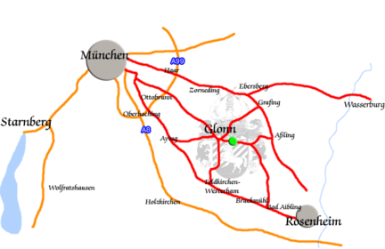 Glonn is located about 27 km southeast of Munich. Driving from the centre of Munich, please use B304 south direction Ebersberg - follow Grafing. The manor is located 2 km east of Glonn. When you arrive in Glonn, please follow the signs in direction of Aßling.